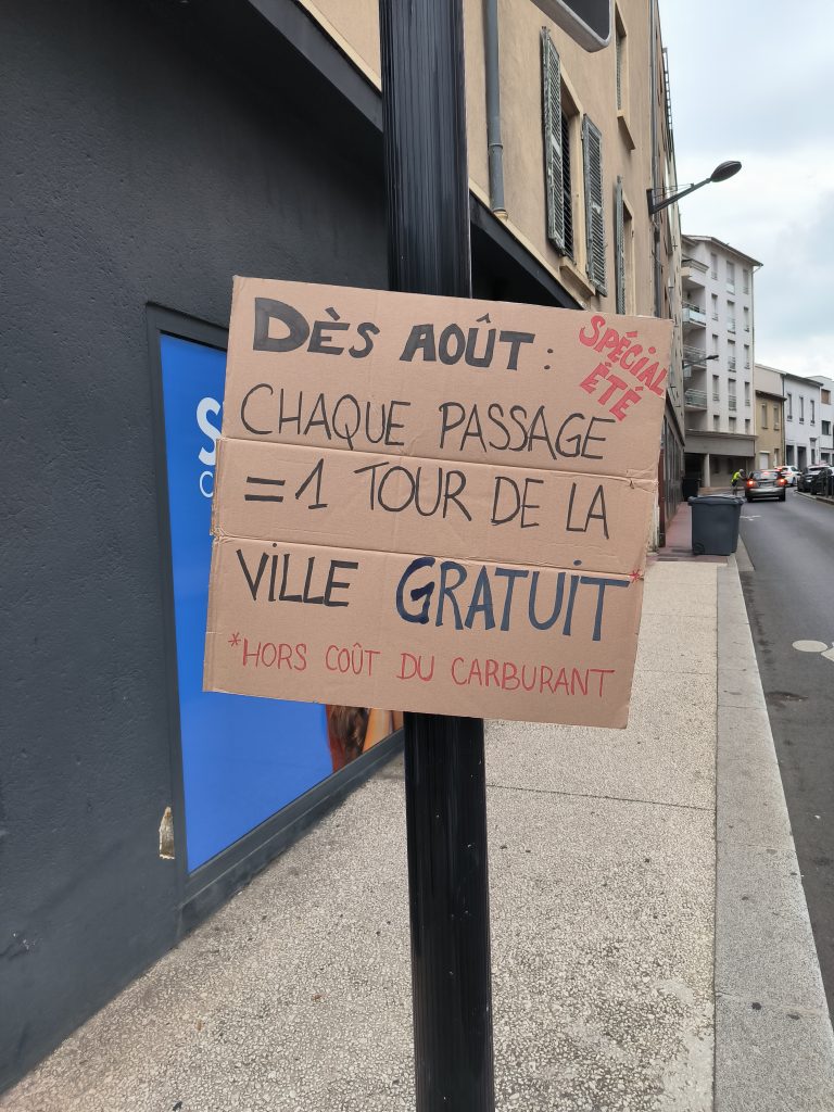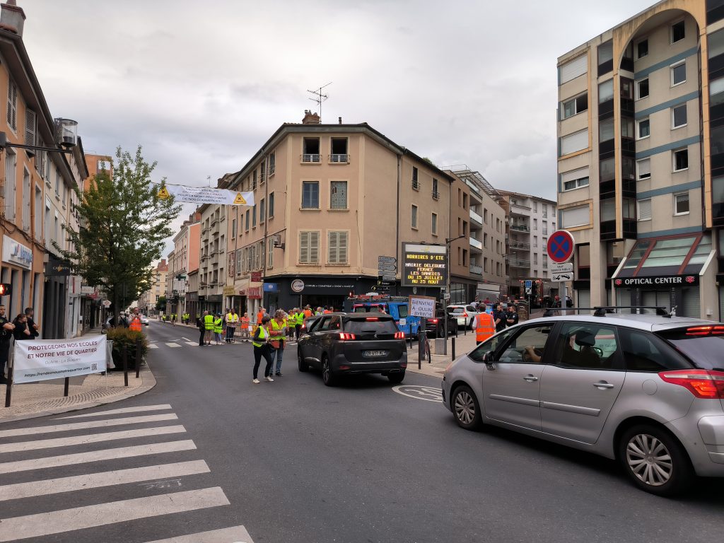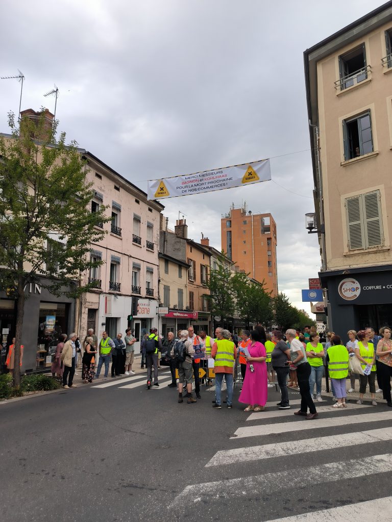 Le 16 juillet au matin, de 7h30 à 8h15, nous avons participé à un « blocage » de la Grande Rue afin d’expérimenter le scénario proposé par la métropole sur le terrain.